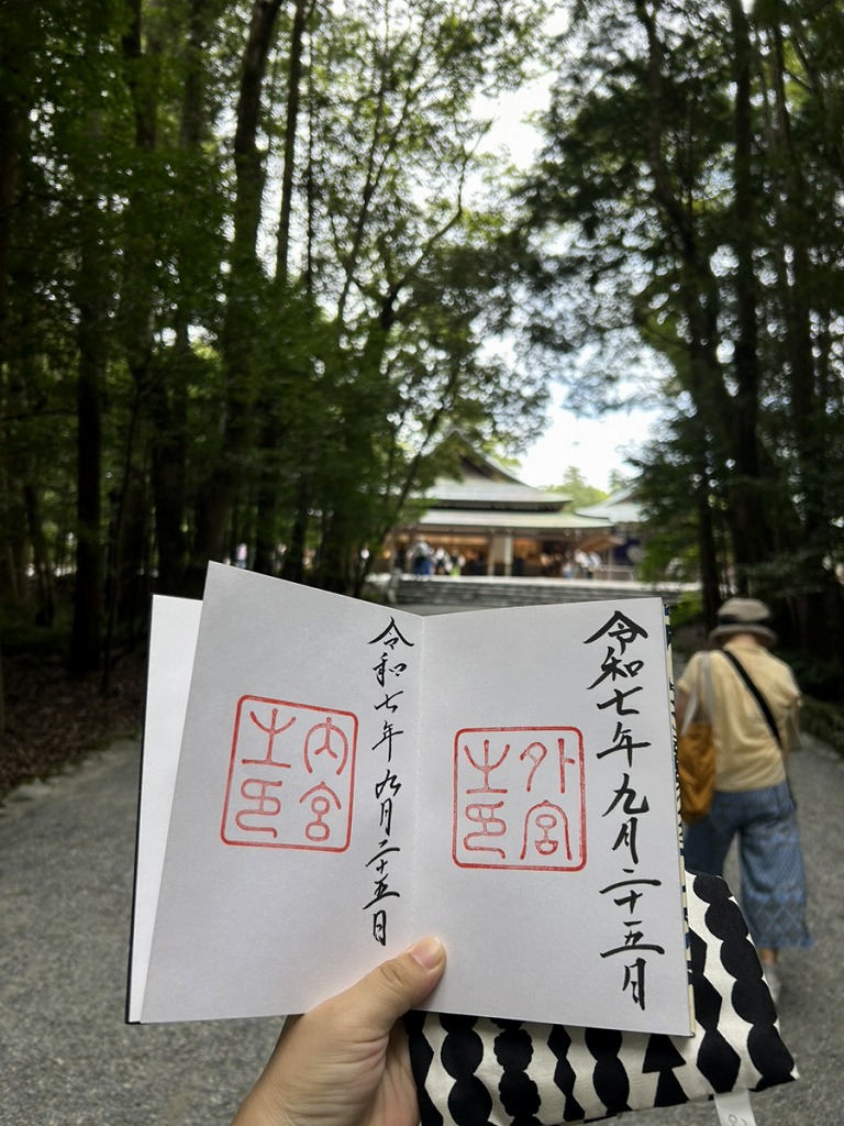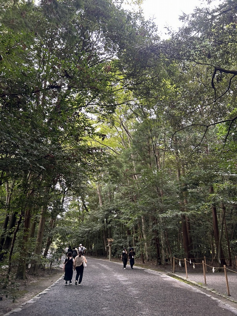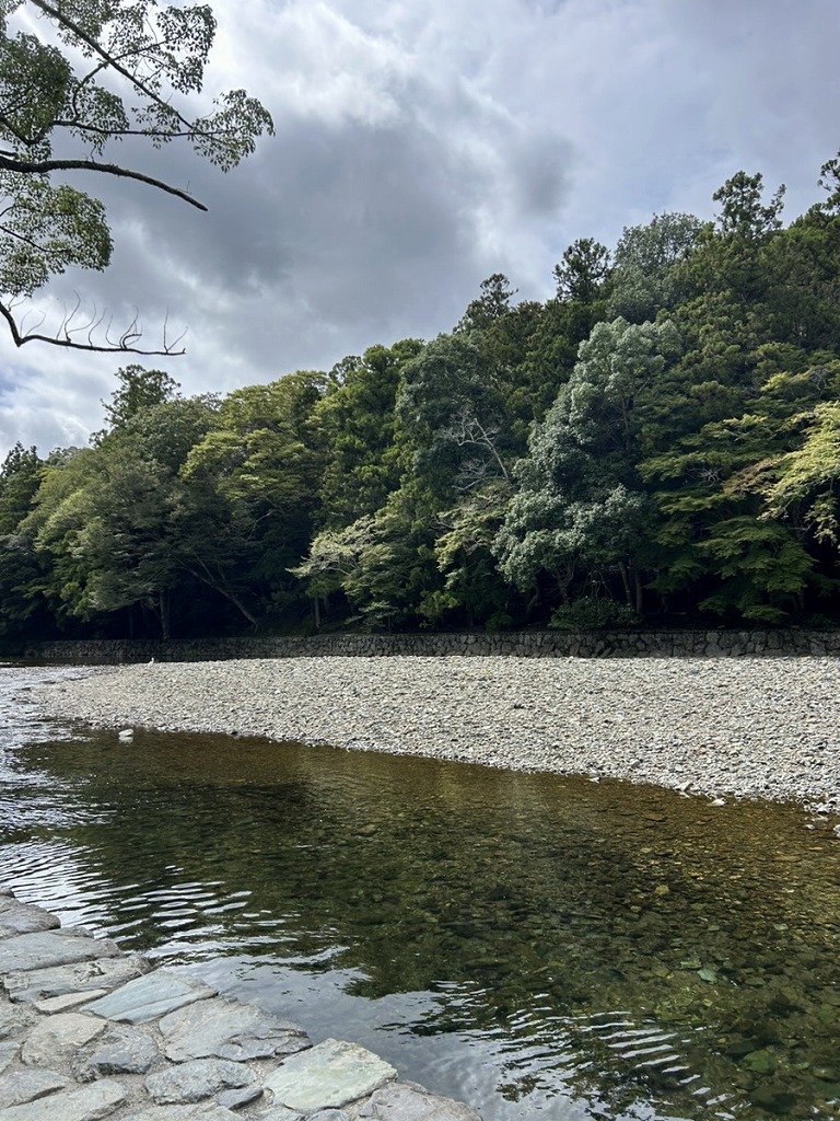 五十鈴川で手を清め、静かな神殿を眺めながら、