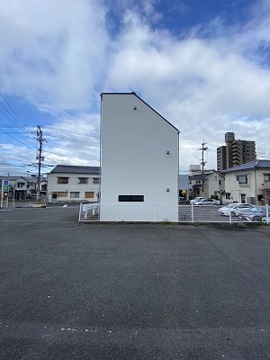 駅近の狭小地に建つ3階建ての住宅です。