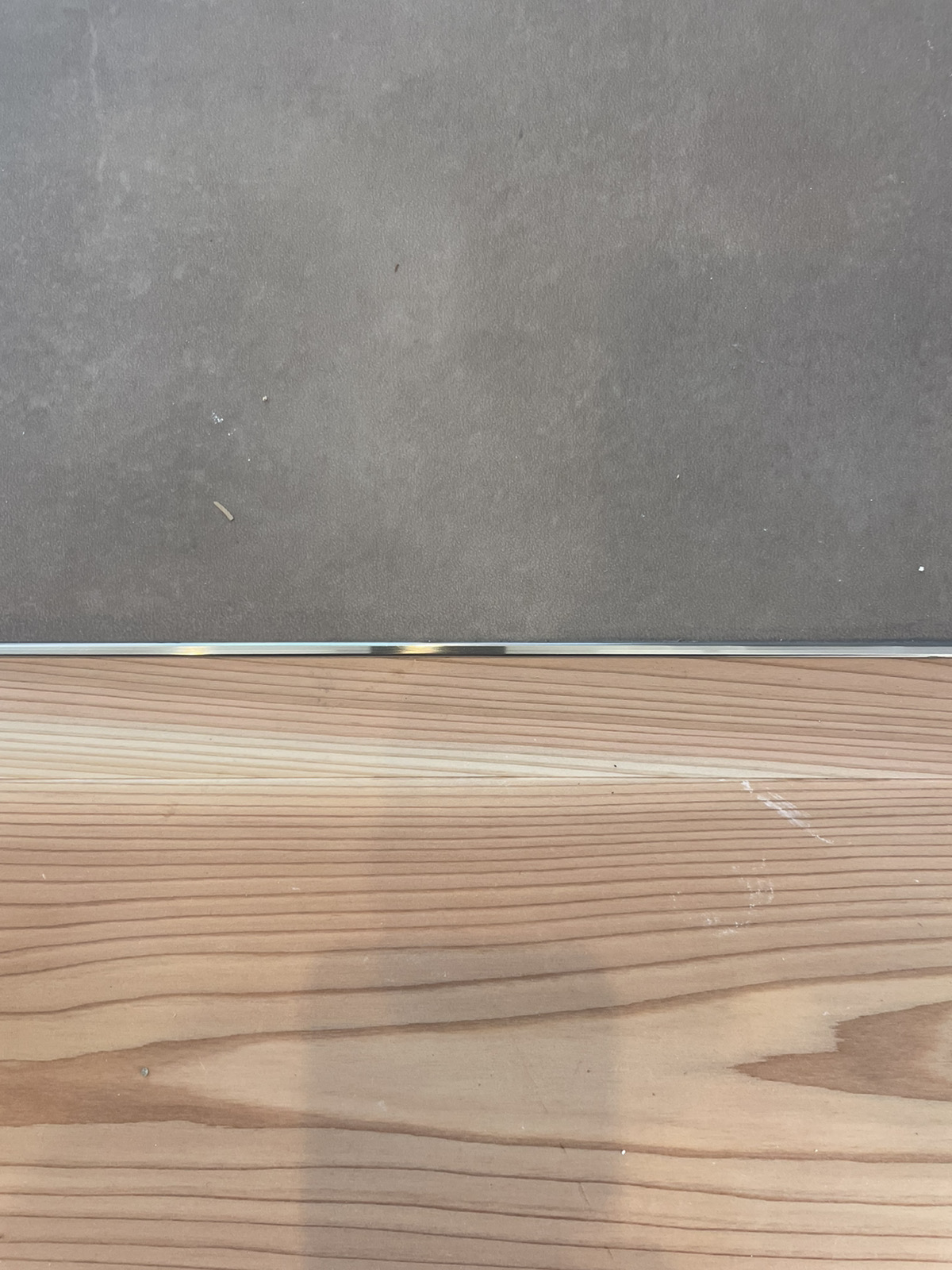 床材同士の見切りをステンレスにすることで段差も少なくアクセントに