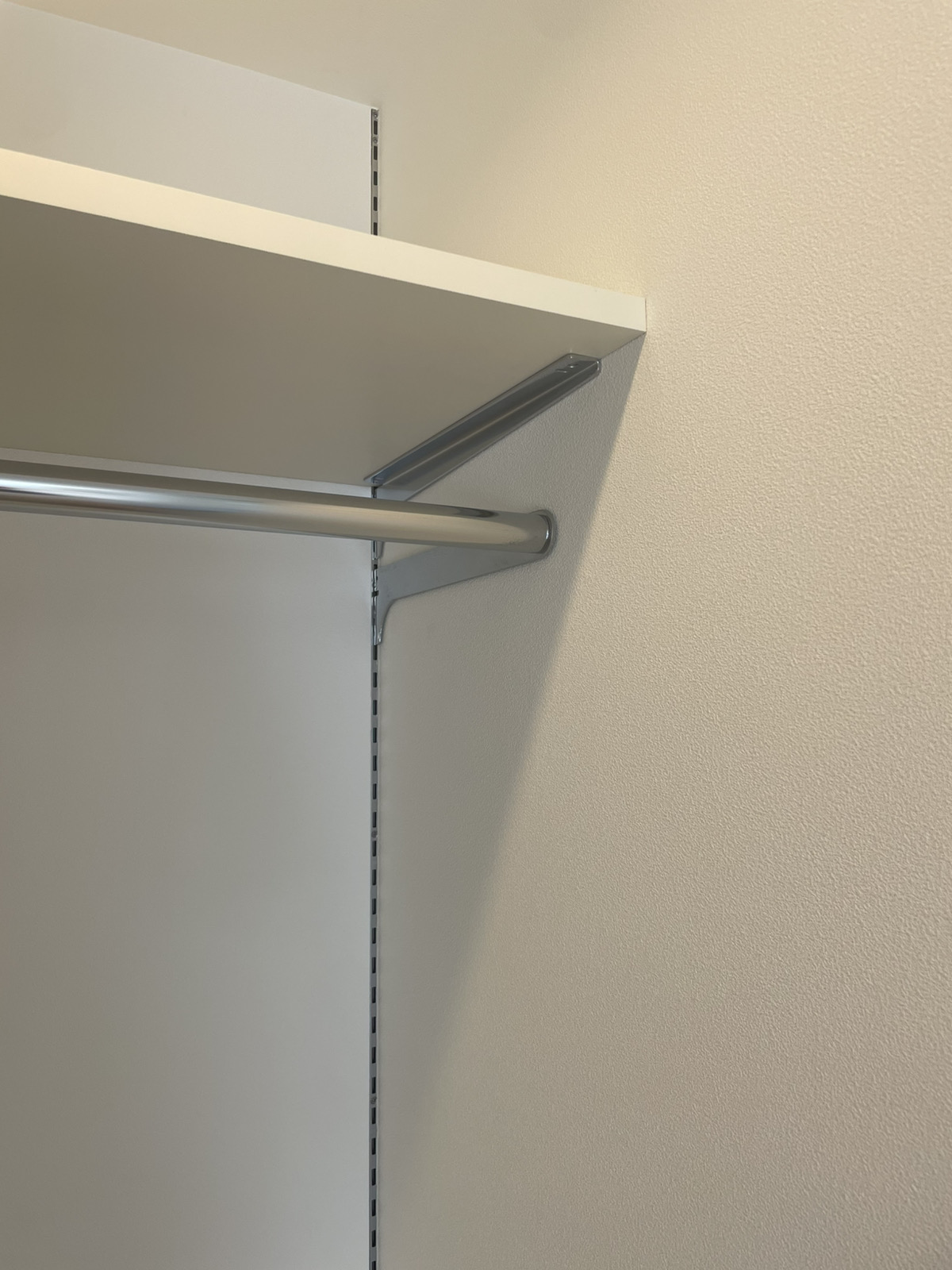 今回のお宅はお施主さんとの話の中で可動棚の棚柱を壁のはじにピッタリとつけることで棚柱が目立たないように!