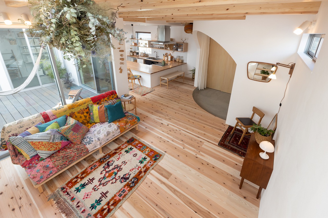 中庭から光が差し込む解放感のあるソラマドの家です。